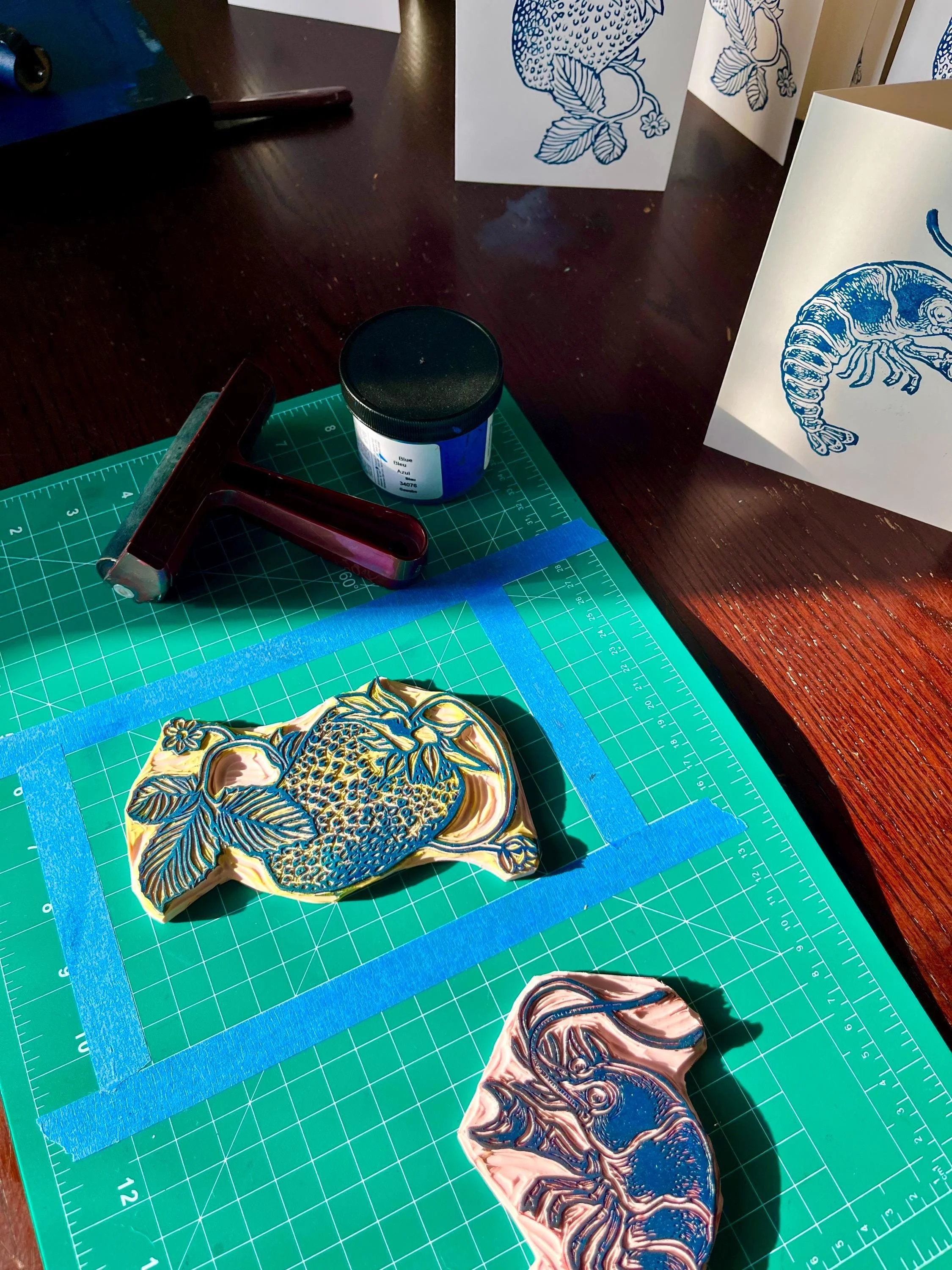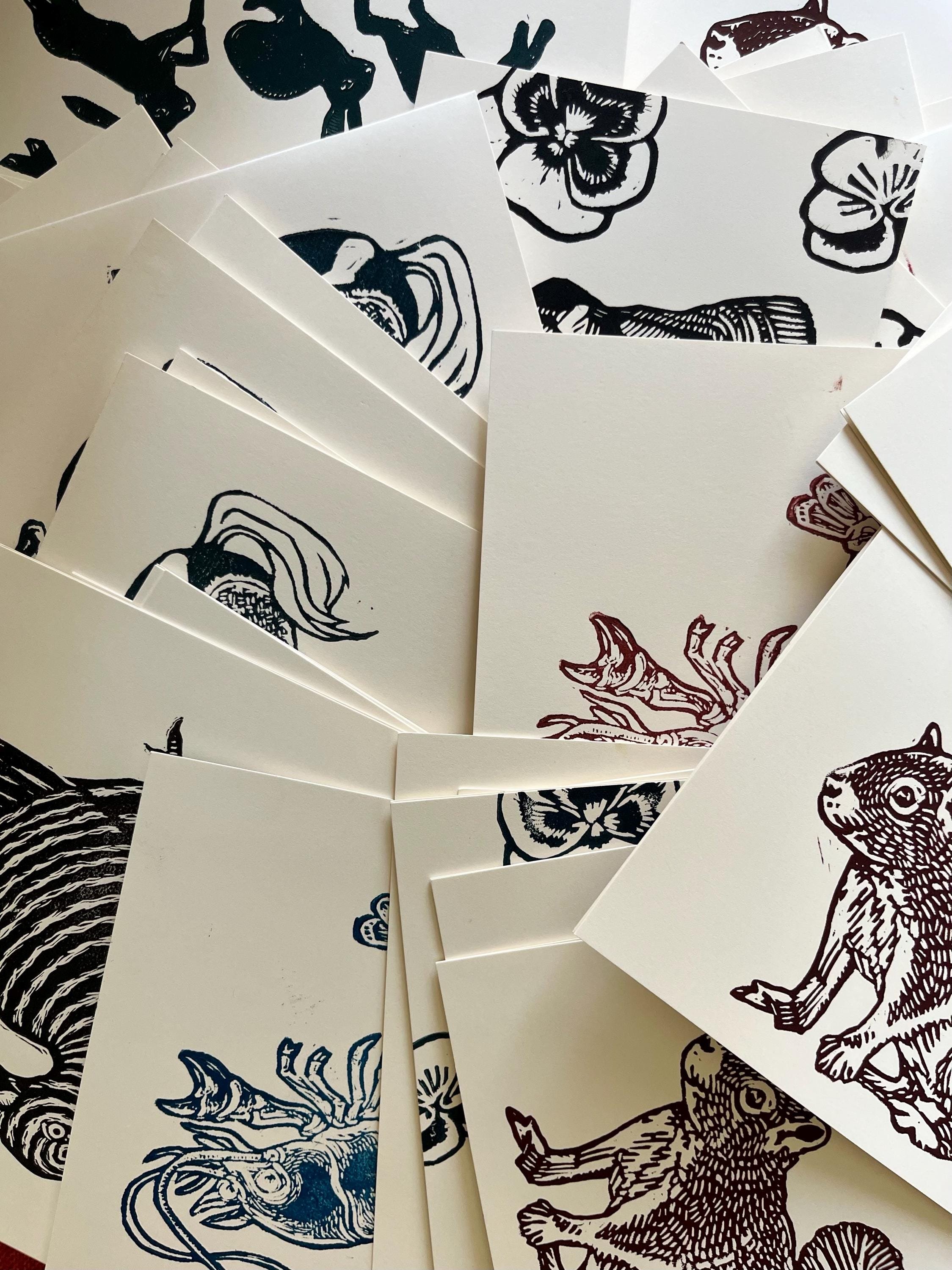 Cards Categories: All Tees Bandanas Totes Cards Recycled Wood Magnets Vinyl Stickers ReWorked All / Hand Printed Greeting Card - Unique Folding Card - Linocut (Block Print) - Blue Chicken (Rooster) from $5.00 Select Single or Set Set of 6 (in a box) Single Card Set of 3 Add To Cart Added! Unique Greeting Card - Folding Card - Linocut (Block Print) Hand Printed in LA - Squirrel from $5.00 View Options Handmade Wild Strawberry Linocut Greeting Card - Block Print from $5.00 Select Single or Set Set of 6 (in a box) Single Card Set of 3 Add To Cart Added! Handmade Linocut Greeting Card: Heart Eyed Mouse Block Print from $5.00 Select Single or Set Set of 6 (in a box) Single Card Set of 3 Add To Cart Added! Handmade Shrimp Linocut Greeting Card: Block Print A7 Card from $5.00 View Options Hand Printed Greeting Card - Unique Folding Card - Linocut (Block Print) - Monarch Butterfly from $5.00 Select Single or Set Set of 6 (in a box) Single Card Set of 3 Add To Cart Added! Handmade Block Print Greeting Card: Flower Cow Design from $5.00 Select Single or Set Set of 6 (in a box) Single Card Set of 3 Add To Cart Added! Hand-Printed Raccoon Greeting Card: Linocut Block Print - Los Angeles Wildlife from $5.00 Select Single or Set Set of 6 (in a box) Single Card Set of 3 Add To Cart Added! Hand Printed Greeting Cards Set: Blank All Occasion Cards with Envelopes $21.00 Add To Cart Added! Hand-Printed Pigeon Greeting Card: Uzumaki Spiral Linocut from $5.00 Select Single or Set Set of 6 (in a box) Single Card Set of 3 Add To Cart Added! Hand Printed Greeting Card - Unique Folding Card - Linocut (Block Print) - Blue Horse from $5.00 View Options Handmade Linocut Rooster Greeting Card: Blue Block Print from $5.00 Select Single or Set Set of 6 (in a box) Single Card Set of 3 Add To Cart Added! Greyhound & Hares Greeting Card: Hand-Printed Linocut Art from $5.00 Select Single or Set Set of 6 (in a box) Single Card Set of 3 Add To Cart Added! Opossum Greeting Card: Los Angeles Wildlife, Hand-Printed Linocut from $5.00 Select Single or Set Set of 6 (in a box) Single Card Set of 3 Add To Cart Added! Hand Carved and Printed Greeting Card - Folding Card - Unique Artist Made Gift - Racoon from $5.00 Select Single or Set Set of 6 (in a box) Single Card Set of 3 Add To Cart Added! 𓆝 𓆟 𓆞 𓆝 𓆟 𓆝 𓆟 𓆞 𓆝 𓆟 𓆞 𓆝 BACK TO THE TOP
