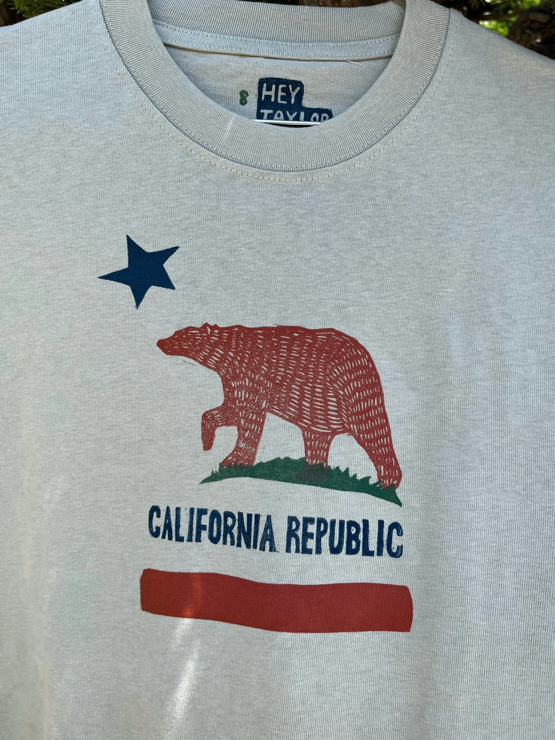 This shirt features my rendition of the California Republic State Flag with the Grizzly Bear motif!