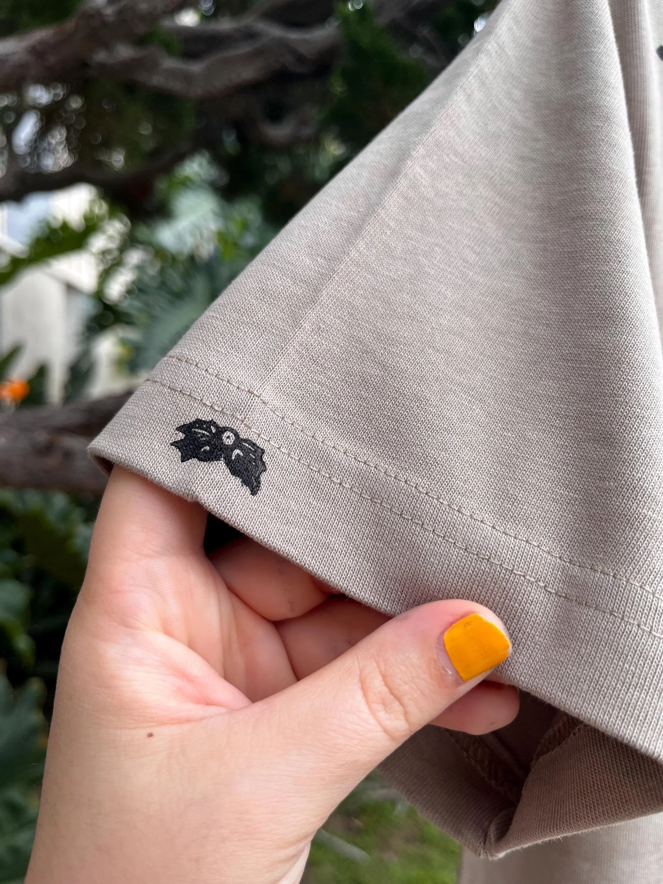These are Premium Quality 100% cotton tees. Heavy weight and a little softer, more wrinkle resistant and durable than my standard tees. The base color is a soft warm grey.