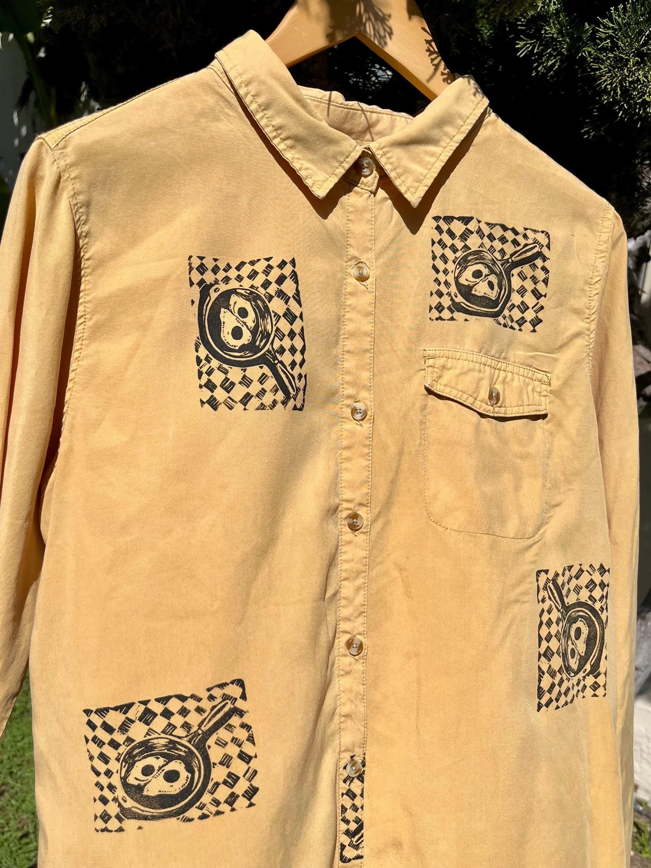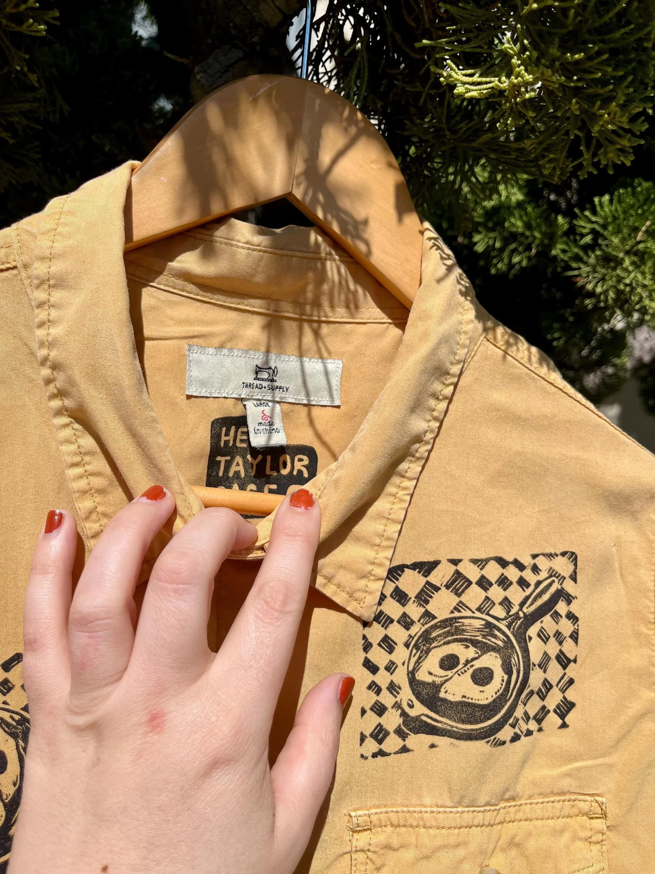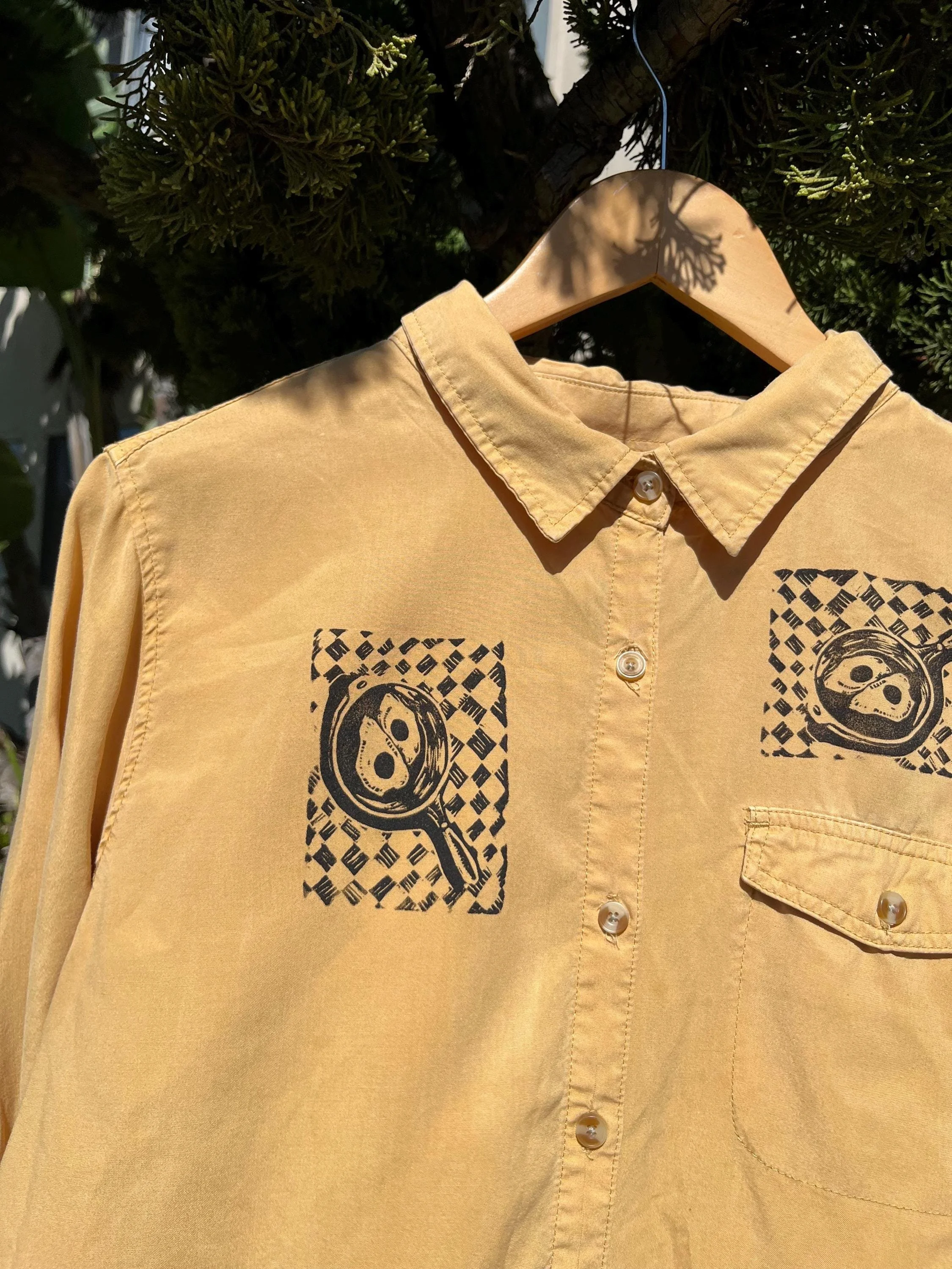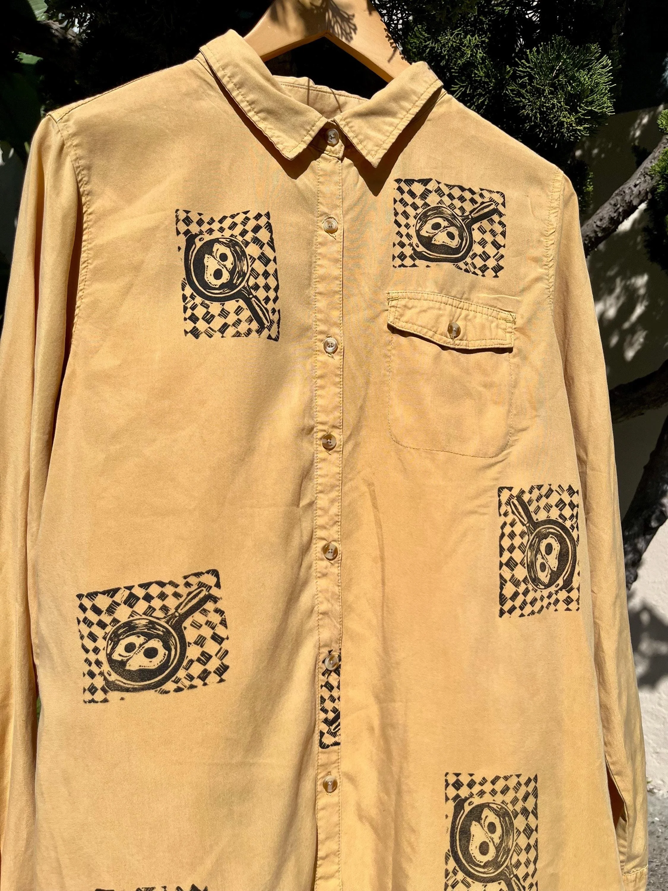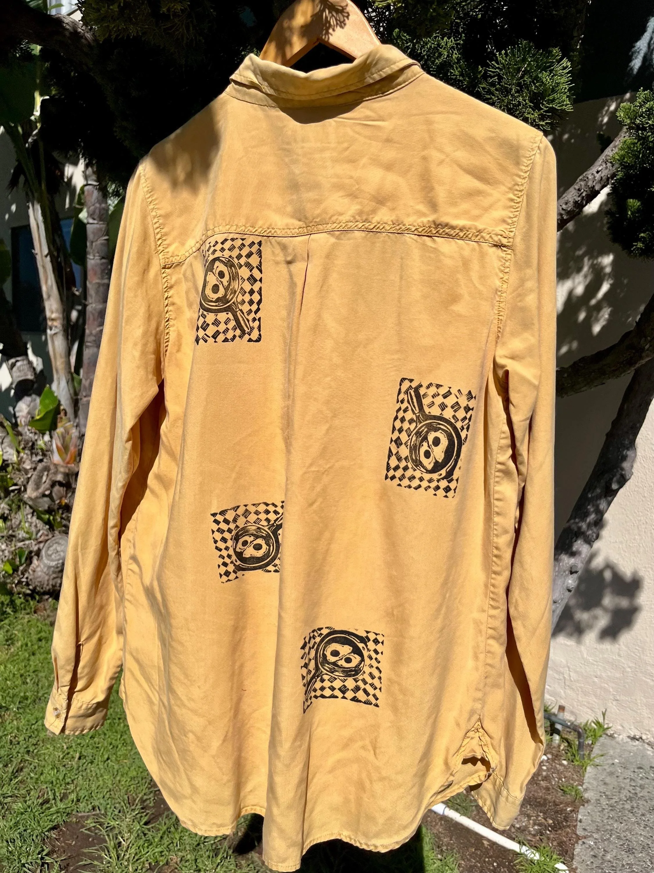 One of a Kind Reworked Button Down - Block Printed by Hand with EGGS