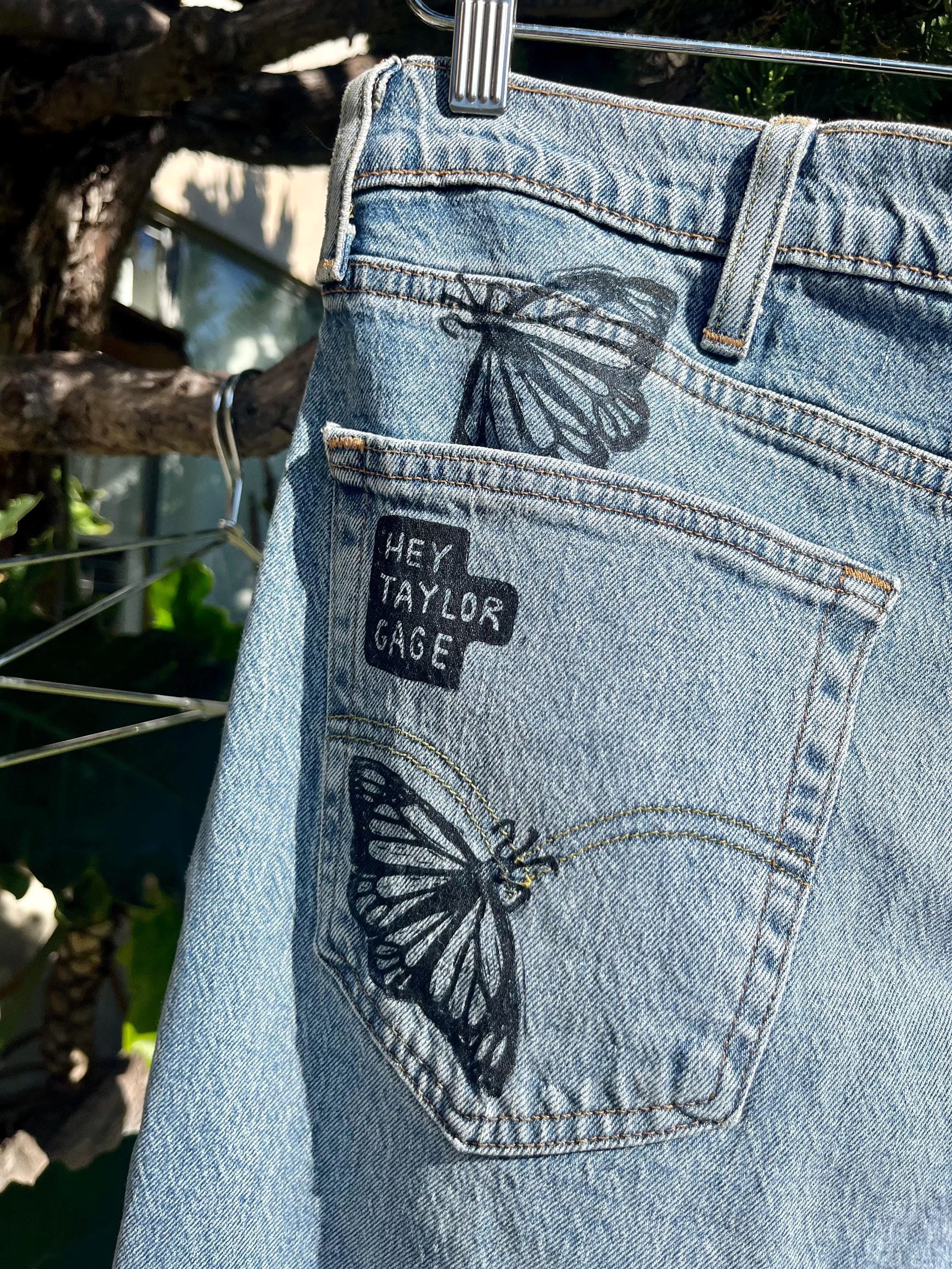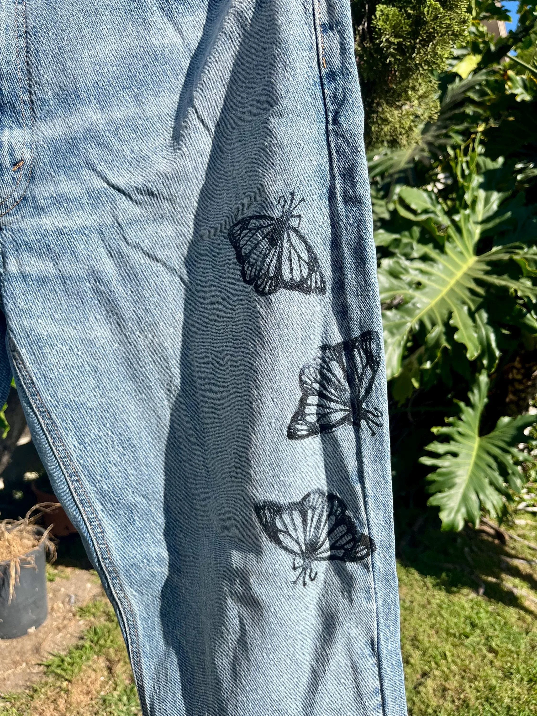 SHOP › Reworked Levi’s Jeans - Hand Block Printed Monarch Butterflies Reworked Levi’s Jeans - Hand Block Printed Monarch Butterflies $40.00 Hand printed jeans! Levis Brand Style 54138x32Blue DenimPrinted by me in my home studio in Los Angeles. These quality jeans have a real humor to them! Very fun with a nice classic fit. Casual and comfortable workwear jean. Perfect for many different styles and occasions! unlimited possibilities. Feel free to message me with questions! I can provide further measurements upon request:) Hand printed jeans! Levis Brand Style 54138x32Blue DenimPrinted by me in my home studio in Los Angeles. These quality jeans have a real humor to them! Very fun with a nice classic fit. Casual and comfortable workwear jean. Perfect for many different styles and occasions! unlimited possibilities. Feel free to message me with questions! I can provide further measurements upon request:) Add To Cart Added! Reviews Reviewer Name Review Date Star Rating Description Posted on Etsy Product Show More