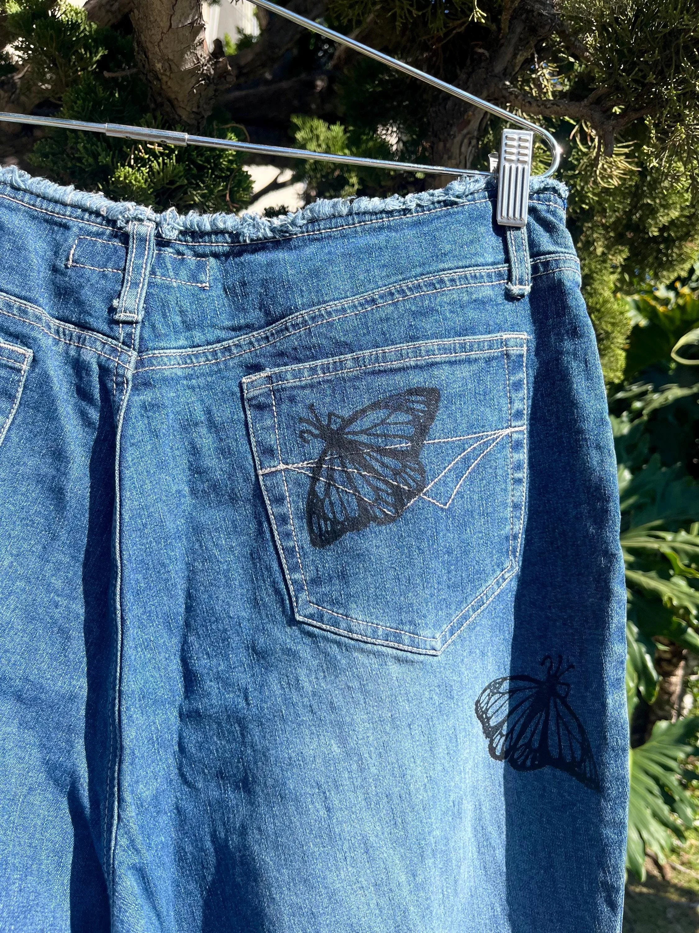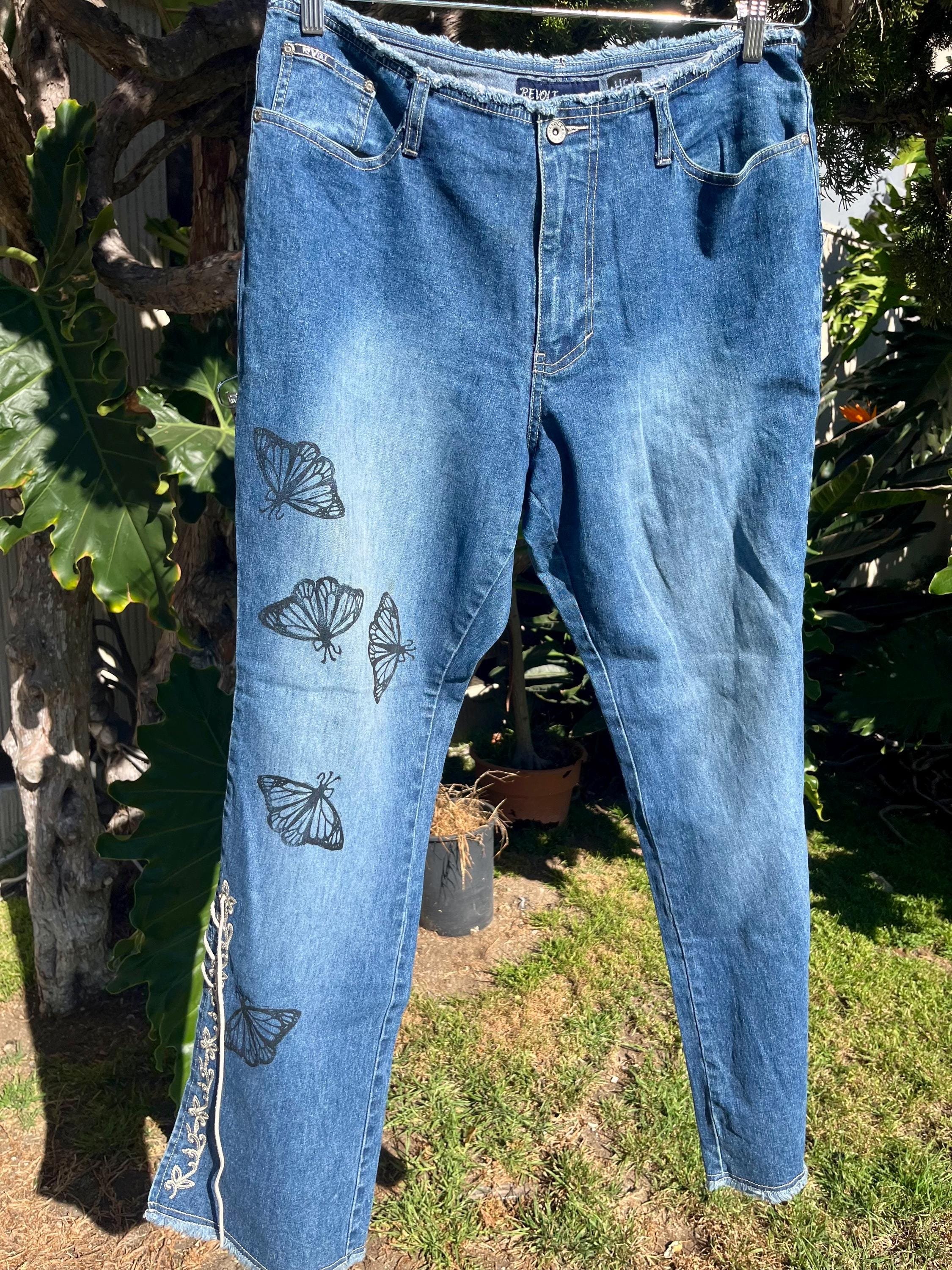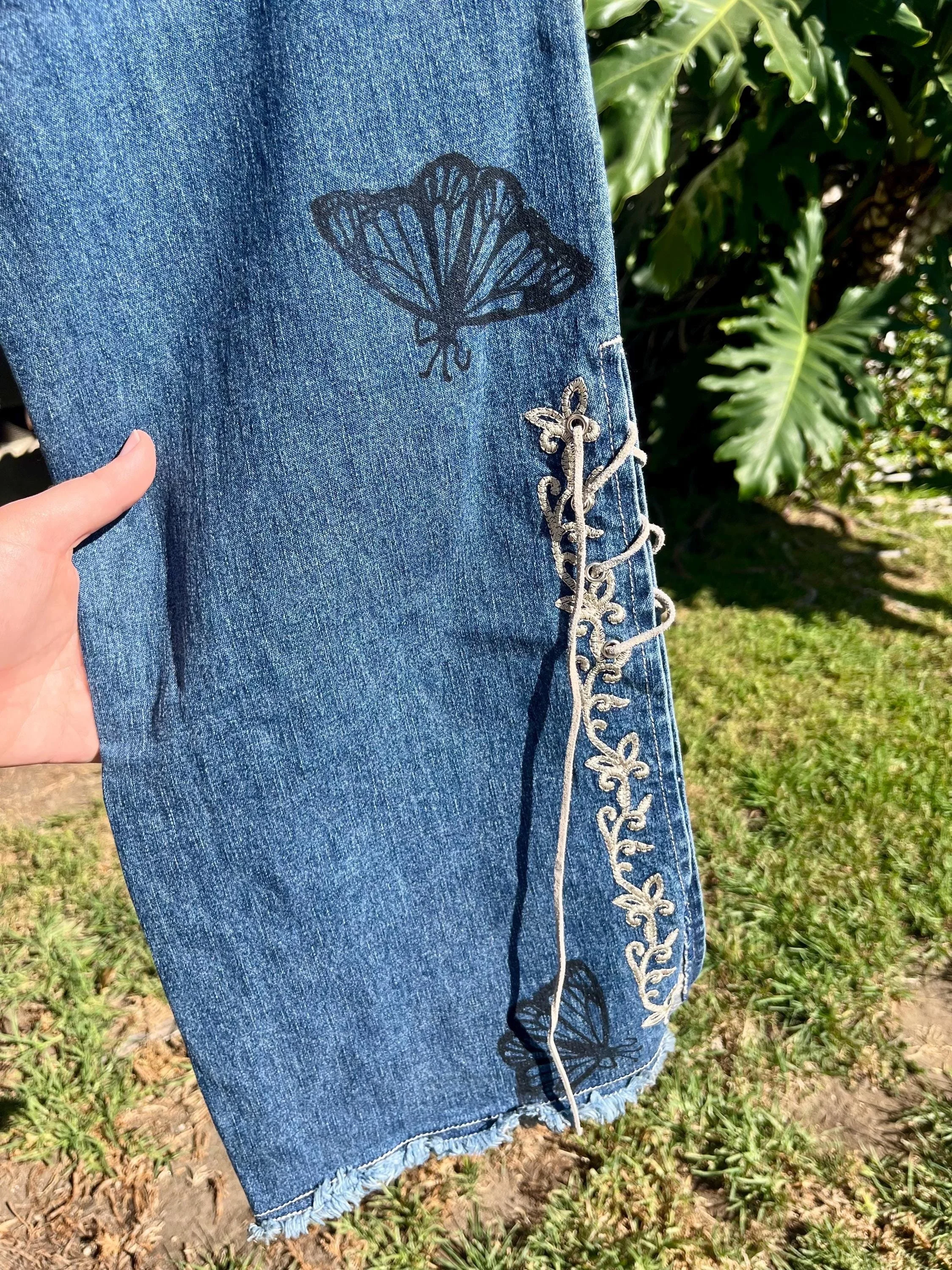 SHOP › Reworked Revolt 90s Low Rise Jeans - Hand Block Printed Monarch Butterflies Reworked Revolt 90s Low Rise Jeans - Hand Block Printed Monarch Butterflies $40.00 Hand printed jeans! Revolt Brand Size 16Blue DenimRaw Hem, Low Waist, Lace Up legs Printed by me in my home studio in Los Angeles. These jeans have spunk! Love the flirty style of them. Great stretch to the material as well and fairly light- comfortable for the summer. Perfect for many different styles and occasions! Line dancing, parties, weekends, vacation, night out? Feel free to message me with questions! I can provide further measurements upon request:) Hand printed jeans! Revolt Brand Size 16Blue DenimRaw Hem, Low Waist, Lace Up legs Printed by me in my home studio in Los Angeles. These jeans have spunk! Love the flirty style of them. Great stretch to the material as well and fairly light- comfortable for the summer. Perfect for many different styles and occasions! Line dancing, parties, weekends, vacation, night out? Feel free to message me with questions! I can provide further measurements upon request:) Add To Cart Added! Reviews Reviewer Name Review Date Star Rating Description Posted on Etsy Product Show More