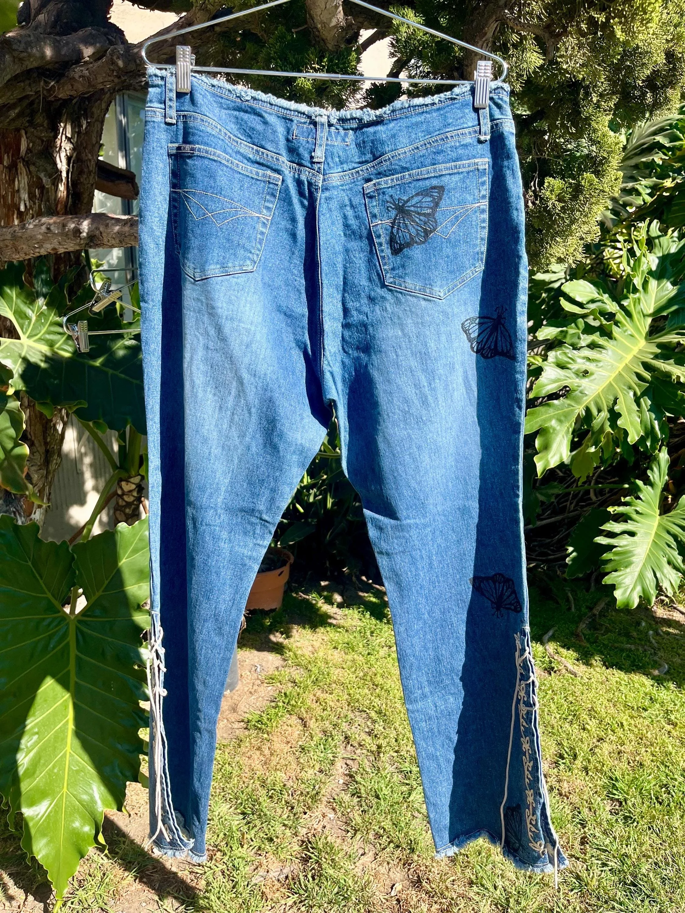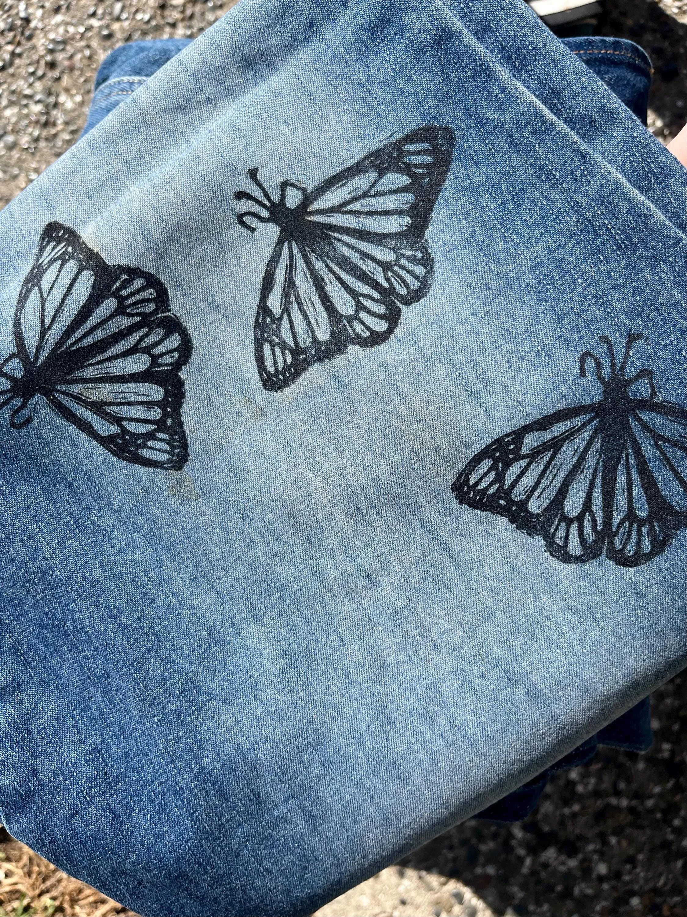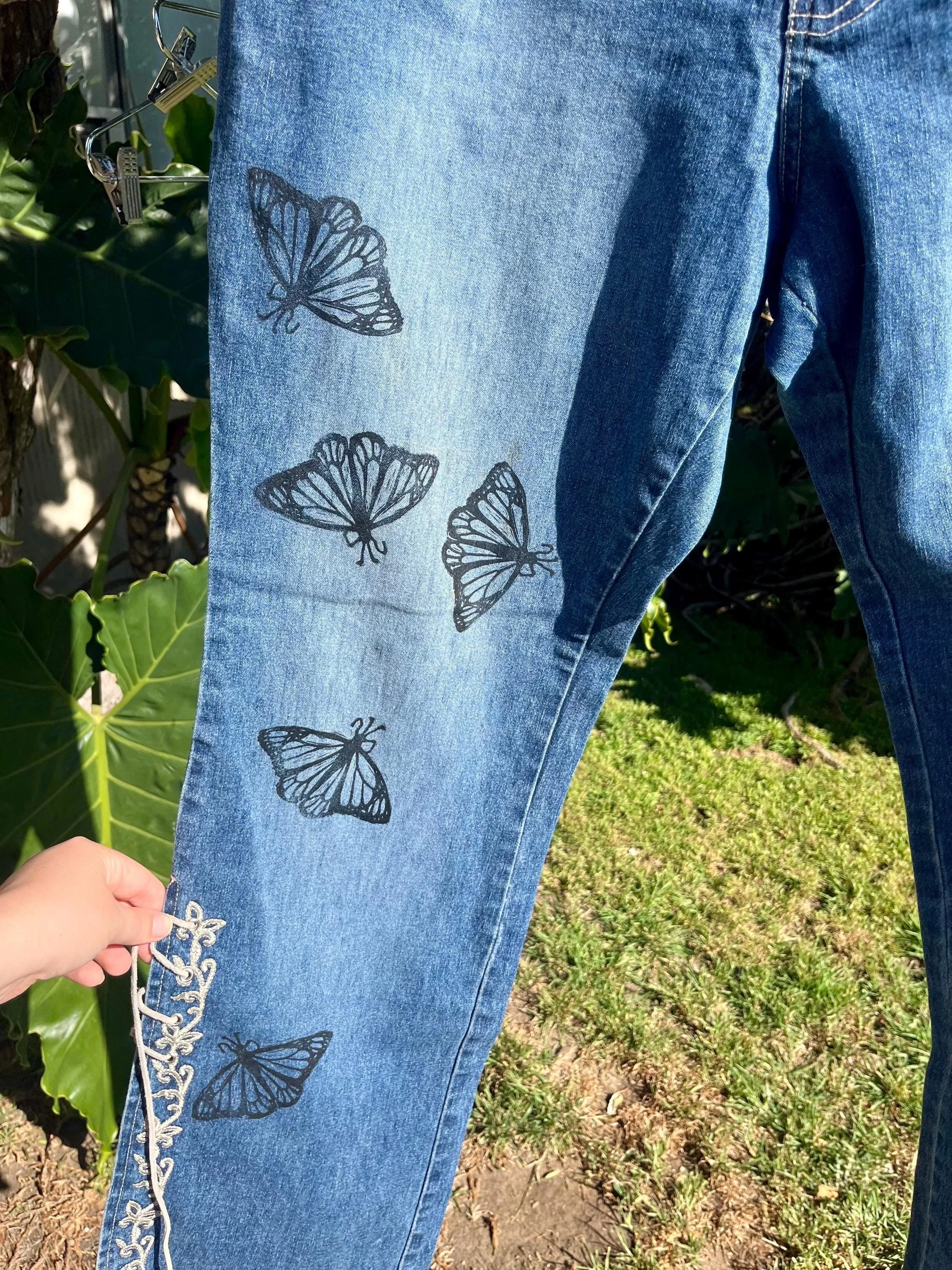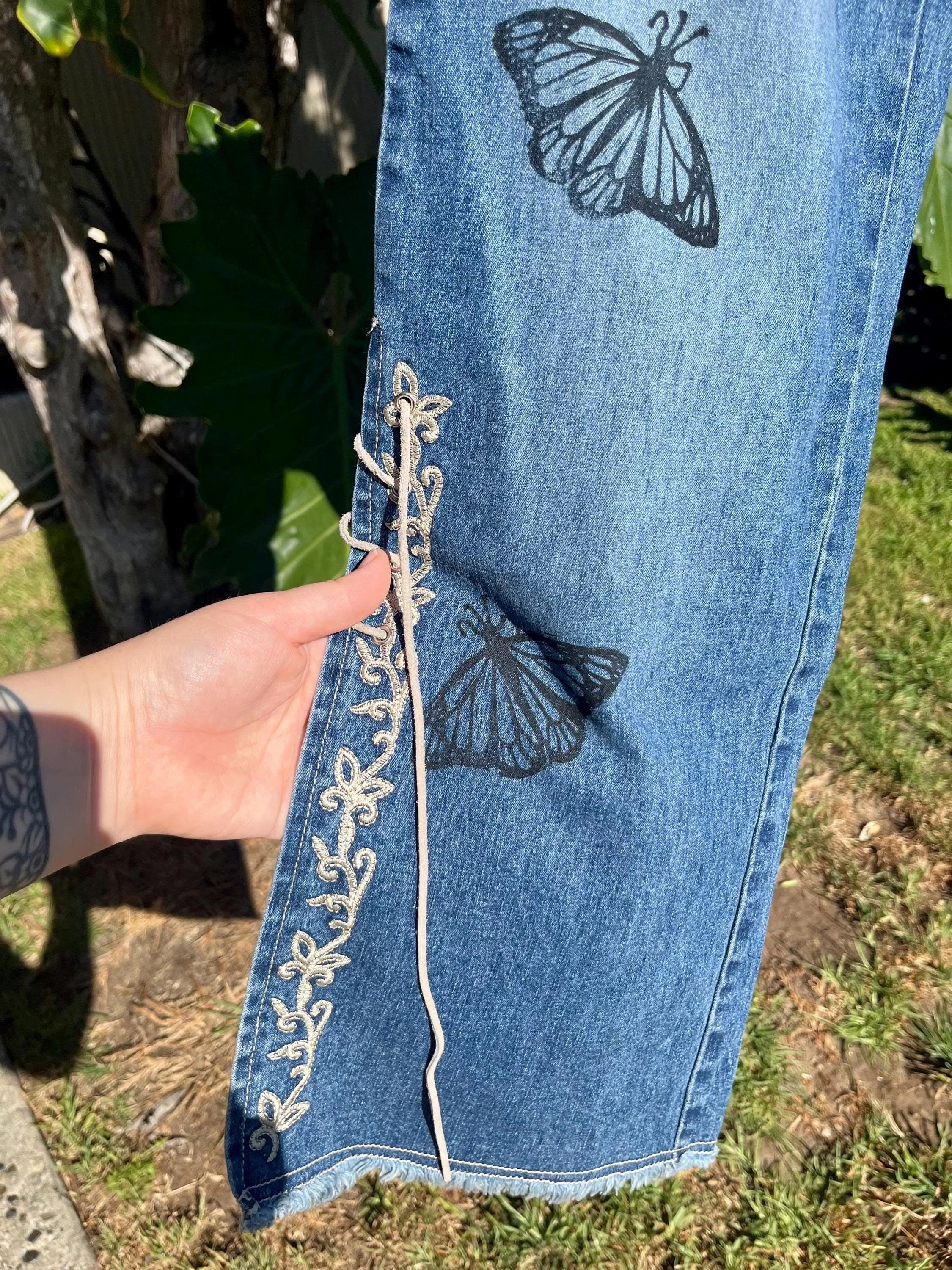 SHOP › Reworked Revolt 90s Low Rise Jeans - Hand Block Printed Monarch Butterflies Reworked Revolt 90s Low Rise Jeans - Hand Block Printed Monarch Butterflies $40.00 Hand printed jeans! Revolt Brand Size 16Blue DenimRaw Hem, Low Waist, Lace Up legs Printed by me in my home studio in Los Angeles. These jeans have spunk! Love the flirty style of them. Great stretch to the material as well and fairly light- comfortable for the summer. Perfect for many different styles and occasions! Line dancing, parties, weekends, vacation, night out? Feel free to message me with questions! I can provide further measurements upon request:) Hand printed jeans! Revolt Brand Size 16Blue DenimRaw Hem, Low Waist, Lace Up legs Printed by me in my home studio in Los Angeles. These jeans have spunk! Love the flirty style of them. Great stretch to the material as well and fairly light- comfortable for the summer. Perfect for many different styles and occasions! Line dancing, parties, weekends, vacation, night out? Feel free to message me with questions! I can provide further measurements upon request:) Add To Cart Added! Reviews Reviewer Name Review Date Star Rating Description Posted on Etsy Product Show More