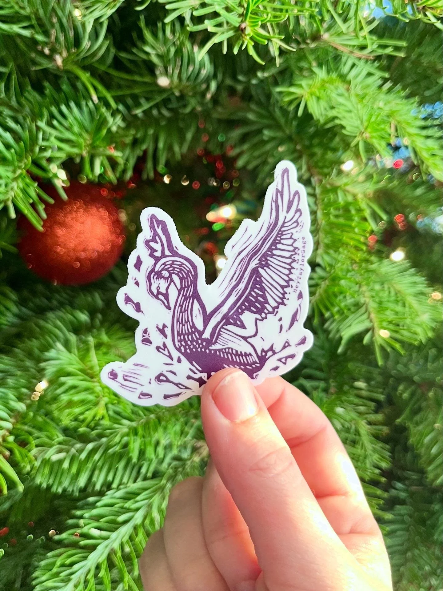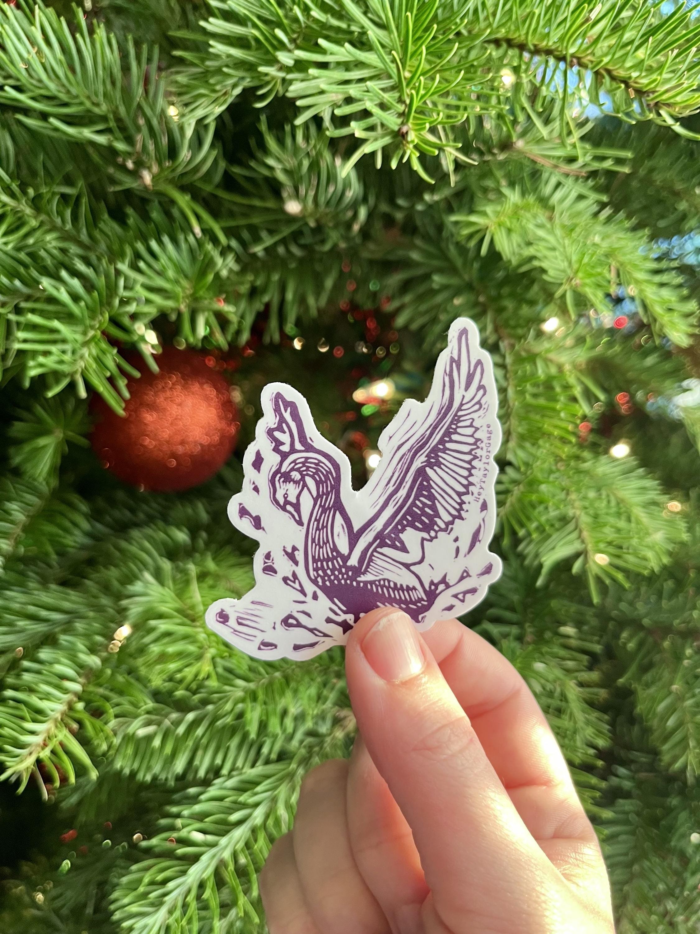 Swan design originally hand carved and block printed (linocut) by me in my home studio in Los Angeles. This sticker also doubles as a mini art print, artist print that you can stick anywhere!