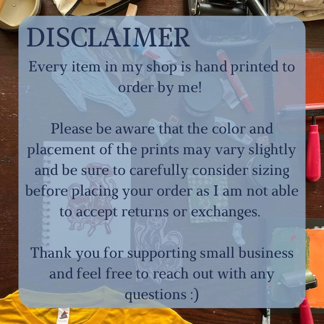 All / Tees Tees Clear Filters Categories All Tees Bandanas Totes Cards Recycled Wood Magnets Vinyl Stickers ReWorked Filter Clear Filter Hand Printed Cotton Tee: Cozy Fall Pumpkins Linocut - Soft Green $39.00 S M L XL 2X 3X Add To Cart Added! Hand-Printed Cotton Tee: Linocut Fried Eggs - Foodie Shirt $39.00 S M L XL 2X 3X Add To Cart Added! Hand Printed - Heavyweight Cotton Tee (block print/linocut) Shirt - Cozy Fall Autumn Pumpkin Patch $39.00 S M L XL 2X 3X Add To Cart Added! Hand-Printed Swans Cotton Tee: Vintage Blue Linocut Shirt $39.00 View Options Hand Printed (block print/linocut) Tee Shirt w/ Eggs - Artist Made $35.00 S M L XL 2X 3X Add To Cart Added! Hand Printed (block print/linocut) Heavyweight Tee Shirt w/ Show Pony Horse $39.00 View Options Hand-Printed Raven Cotton Tee – Nevermore Linocut Shirt $39.00 S M L XL 2X 3X Add To Cart Added! Hand-Printed Salmon Tee: Maroon Red Linocut, Hand printed Cotton Shirt $35.00 View Options Hand Printed (block print/linocut) Tee Shirt “Silly Goose” blue on yellow $33.00 S M L XL 2X 3X Add To Cart Added! Hand Printed (block print/linocut) Tee Shirt w/ Horses - Unique Show Pony $35.00 S M L XL 2X 3X Add To Cart Added! Hand Printed (block print/linocut) Tee Shirt “Don’t Call Me” Rotary Phone $33.00 S M L XL 2X 3X Add To Cart Added! Hand-Printed Bats Cotton Tee: Warm Grey Linocut Shirt $39.00 S M L XL 2X 3X Add To Cart Added! Hand Printed (block print/linocut) Heavyweight Tee Shirt w/ Sardines in multiple colors $39.00 View Options Hand-Printed Winter Fawn Deer Cotton Tee: Warm Grey Linocut Shirt $39.00 View Options Hand Printed (block print/linocut) Tee Shirt w/ Vintage Tinned Sardines $35.00 View Options Hand-Printed Bats Cotton Tee – Linocut Block Print Shirt $39.00 S M L XL 2X 3X Add To Cart Added! Hand Printed (block print/linocut) Tee Shirt “Silly Goose” white on green $33.00 S M L XL 2X 3X Add To Cart Added! Hand Printed Bat T-Shirt – Grey Cotton Linocut Tee $39.00 S M L XL 2X 3X Add To Cart Added! Hand Printed Birds Cotton Tee: Linocut Block Print, Bow Sleeve $39.00 S M L XL 2X 3X Add To Cart Added! No results found No results match your search. Try removing a few filters. 𓆝 𓆟 𓆞 𓆝 𓆟 𓆝 𓆟 𓆞 𓆝 𓆟 𓆞 𓆝 BACK TO THE TOP